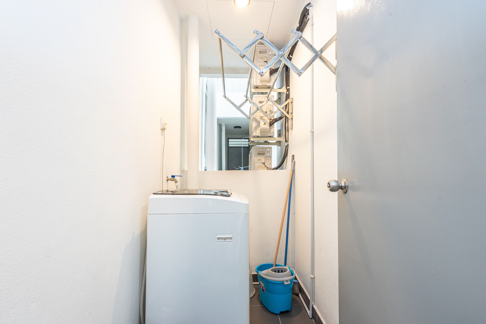 - Washing Machine, microwave, induction cooker, water dispenser, fridge, cutlery, plates, bowls, cups